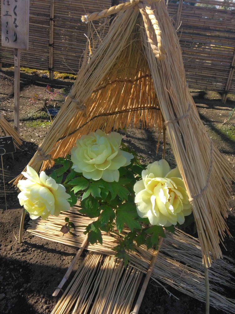 寒牡丹でしょうか。藁ぼっこ、上の方の言葉で知りました。