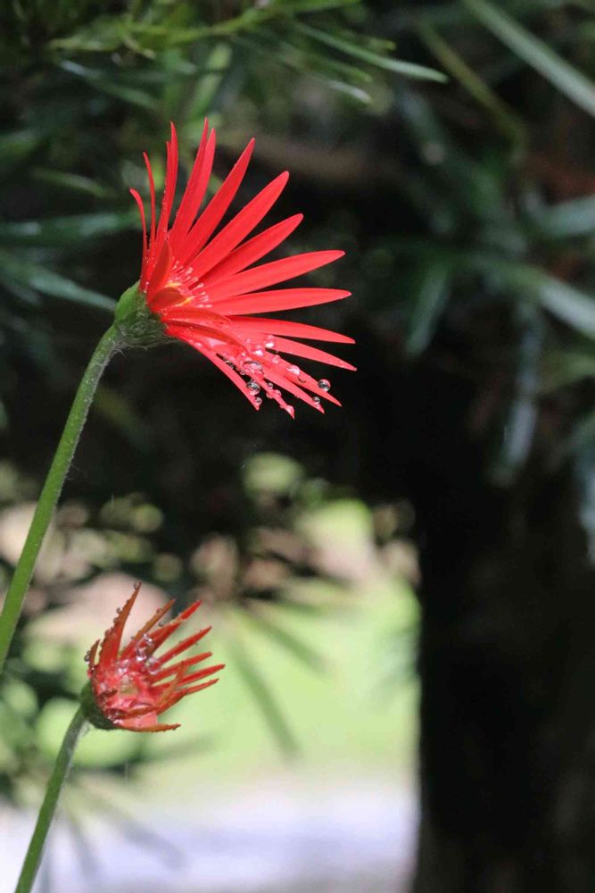 親子のガーベラに滴💧