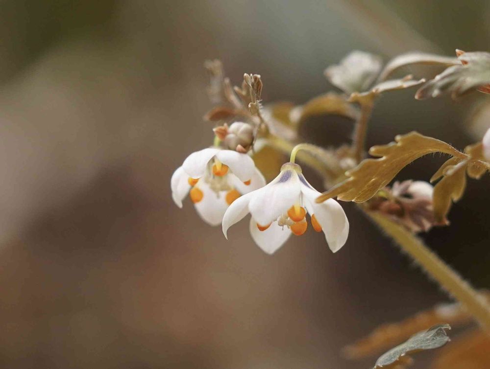 1cm程度の小さな花ですが白色の萼弁に紫色の条があり雄蕊の様な黄色の花弁とのコントラストが綺麗です😊