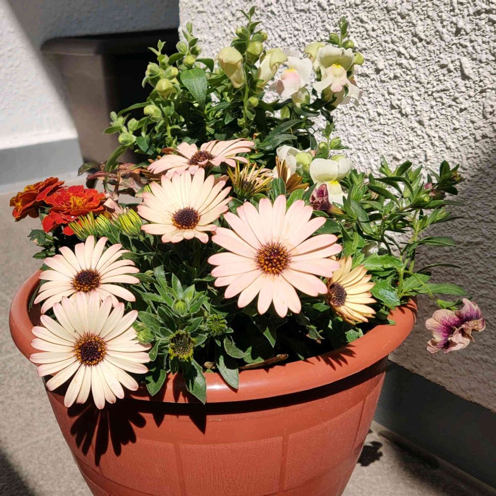クリーム色のオステオスペルマムの寄せ植え