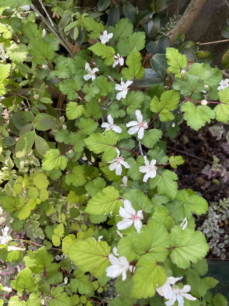 ニガイチゴが満開です、しかしら1本しかないため今年も実がならない可能性が高いです。