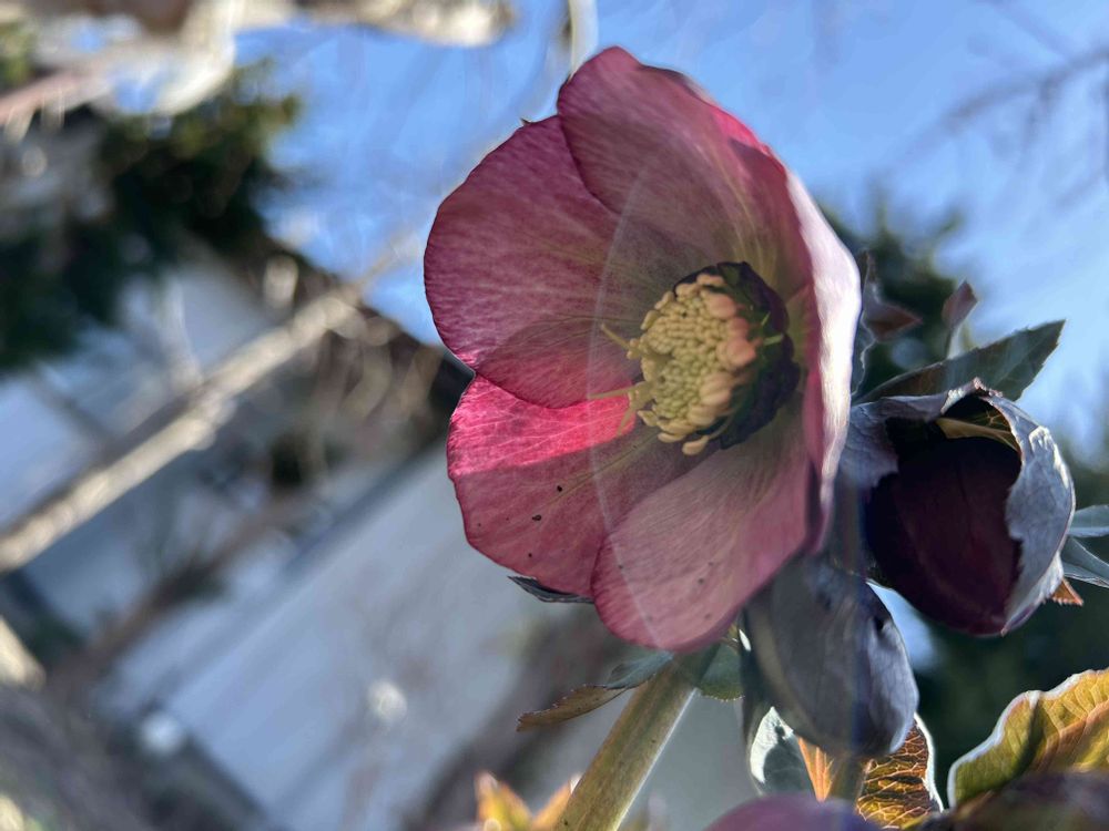 雪の下からのクリスマスローズ,花開いたのね☺️私の家も,この色のクリスマスローズが花開いて来てます😊(鉢植え)