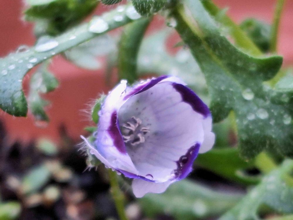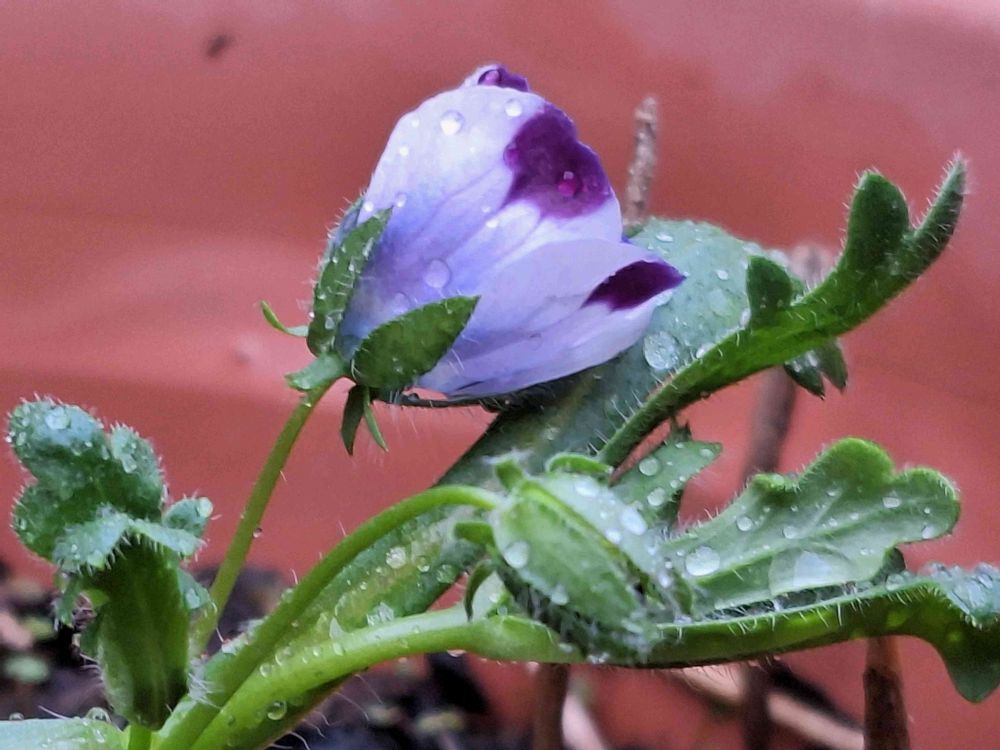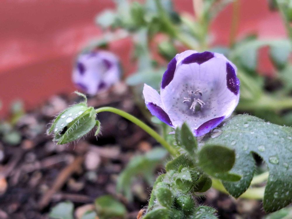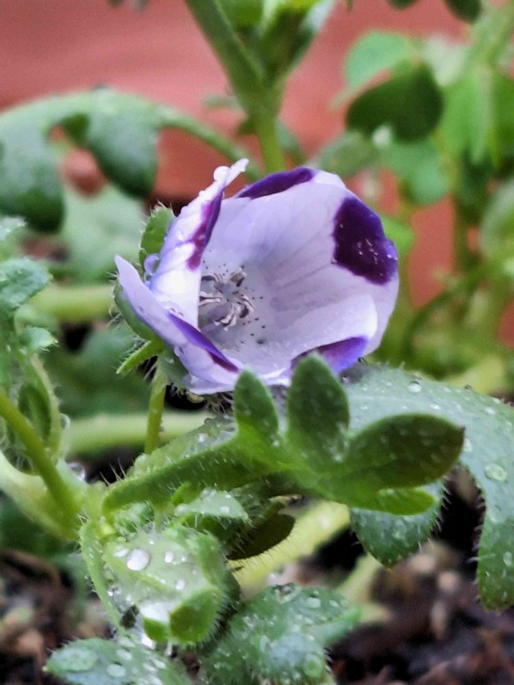 去年、ネモフィラ混合の種を蒔いて咲いたネモフィラマクラータ🤍💜🤍です😊