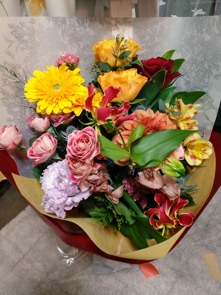 メッチャ綺麗な花束をもろて良かったね(⑉>ᴗ<ノノ゙パチパチパチ💐🎶