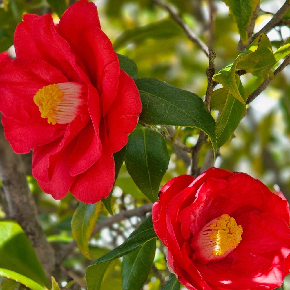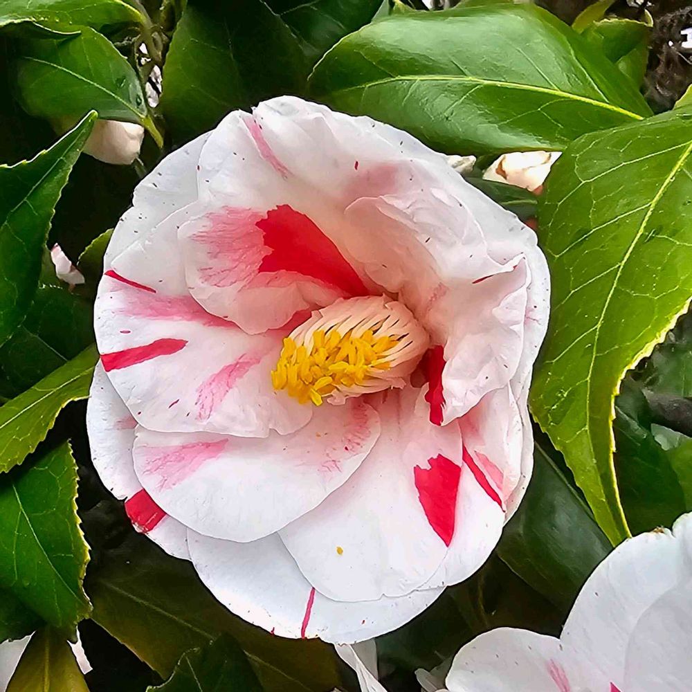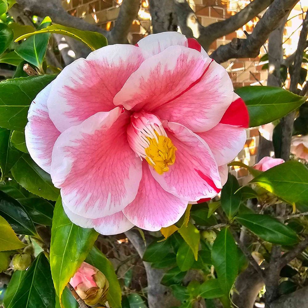 一本の木から 色も柄も洋々な椿が 艶やかに咲いていました。