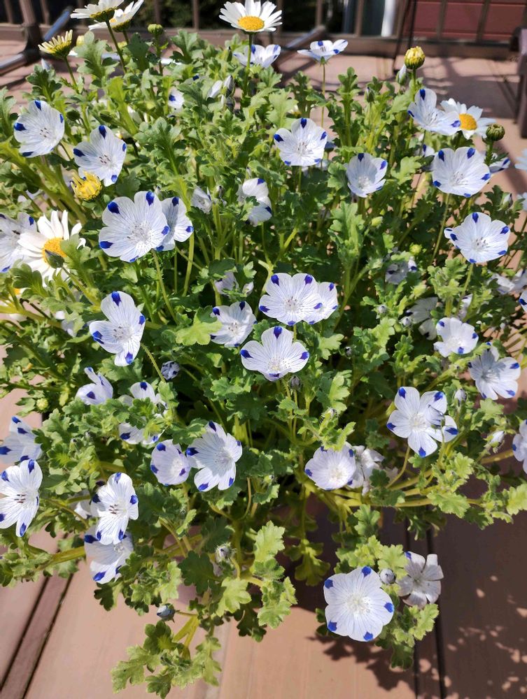 ネモフィラ(マクラータ)とノースポールをひと株ずつ植えただけなのに…ギュウギュウのモリモリに!😅