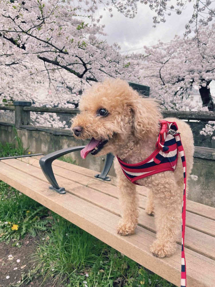 桜とメイちゃんとっても可愛い🐶🌸