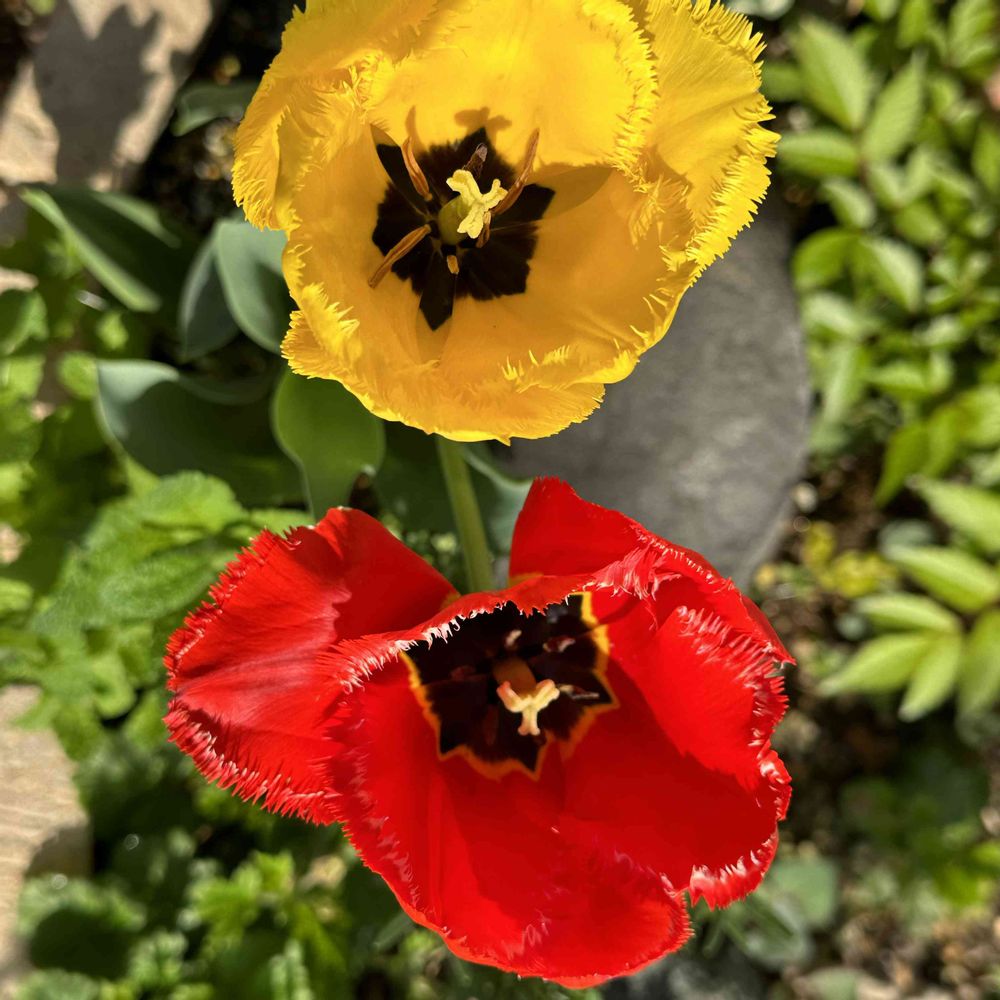 4枚めと5枚めは、一緒の花壇に植えた黄色のチューリップと赤色のチューリップです。