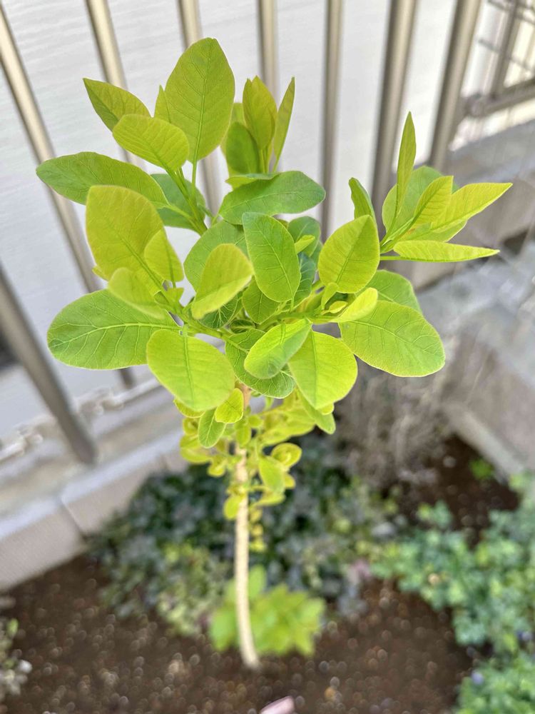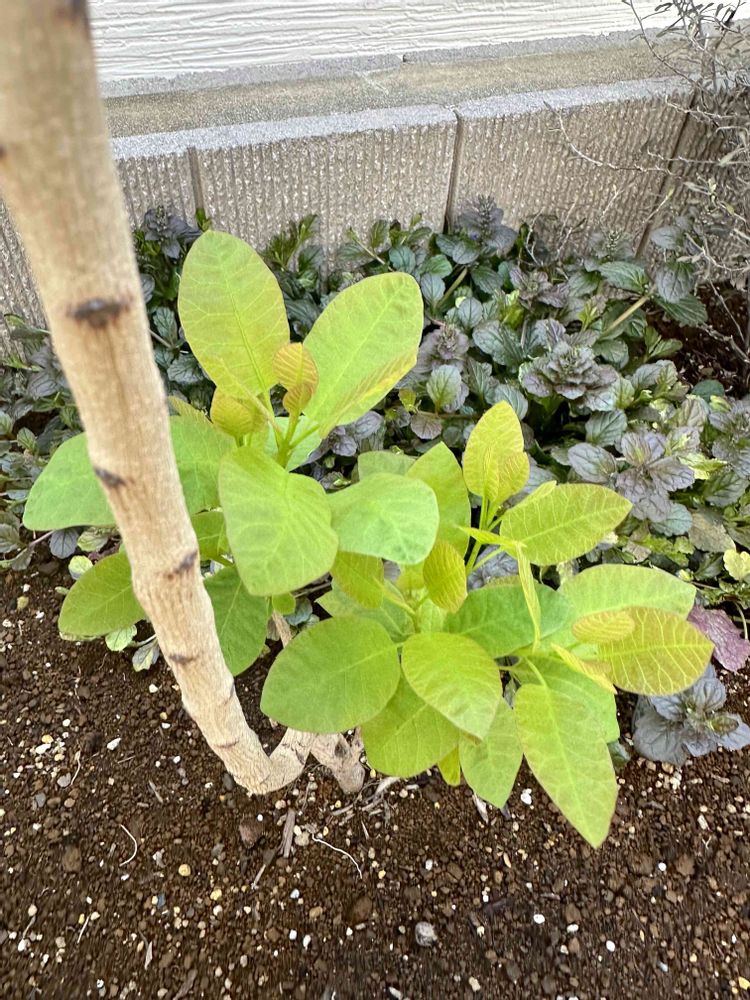 スモークツリーの中では小さめの品種だと聞いて安心して育てていたんだけど…1年ですっごく縦に伸びた(110cm)な?!