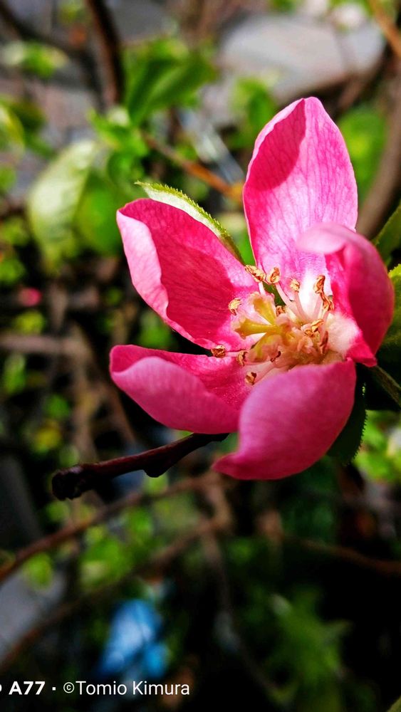 小さな庭の花梨の一番花が、咲きました。