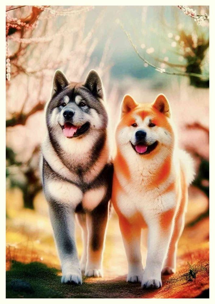 今回は「チューリップ畑に埋もれる笑顔の秋田犬」をAIに描いてもらいました💚🌱🌿🌱