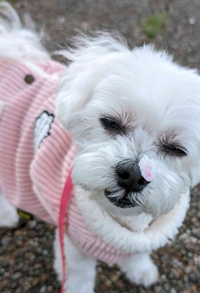 サクラ散歩の中「花びら取って!」と甘えるワンコで参加です💕
