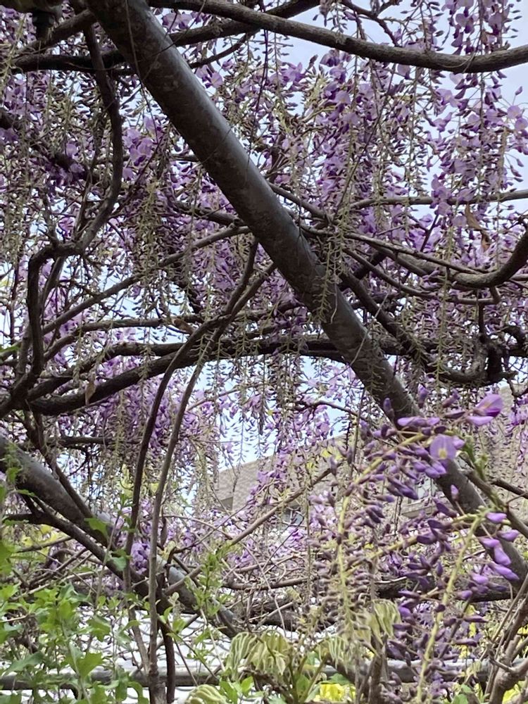 高麗人参の入ったお酢を入れて食べる薬膳ラーメンです。めちゃくちゃに美味しくて、完全に完食、外に出ると、ラーメン屋さんの、前の古民家で、藤の花が咲き出してました。