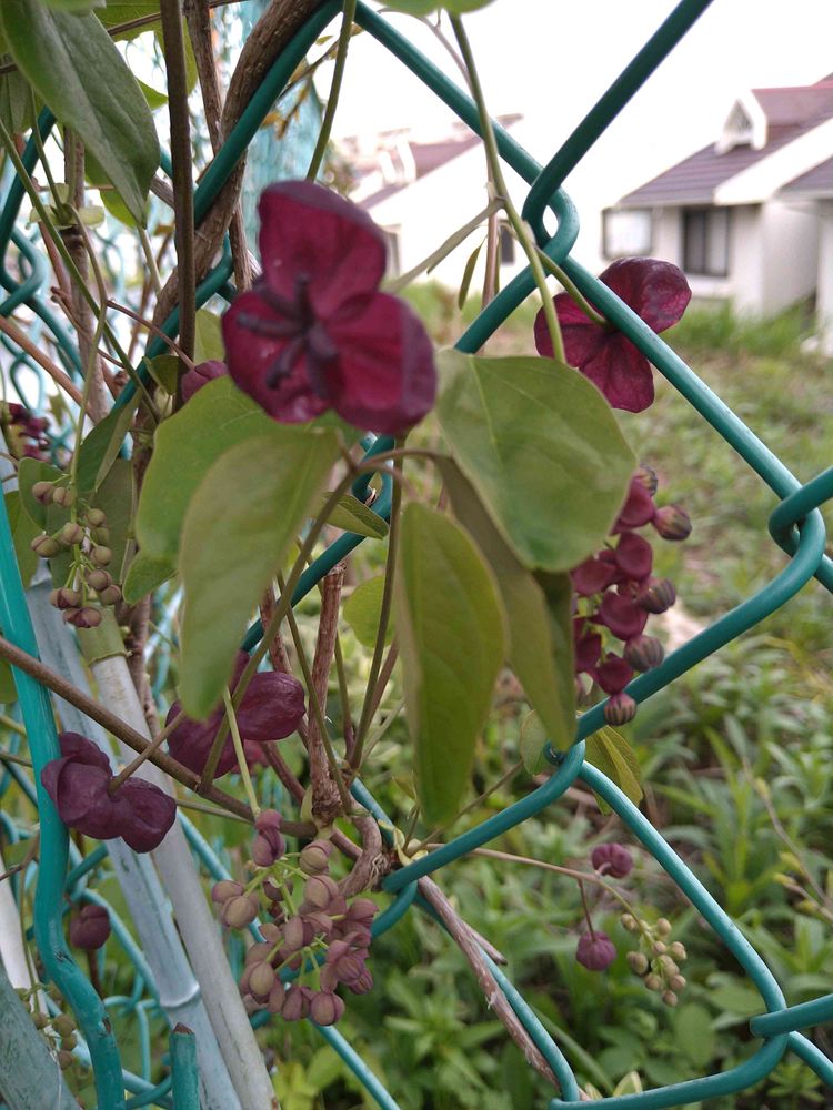 ❺フェンスにアケビ🟣🌿
