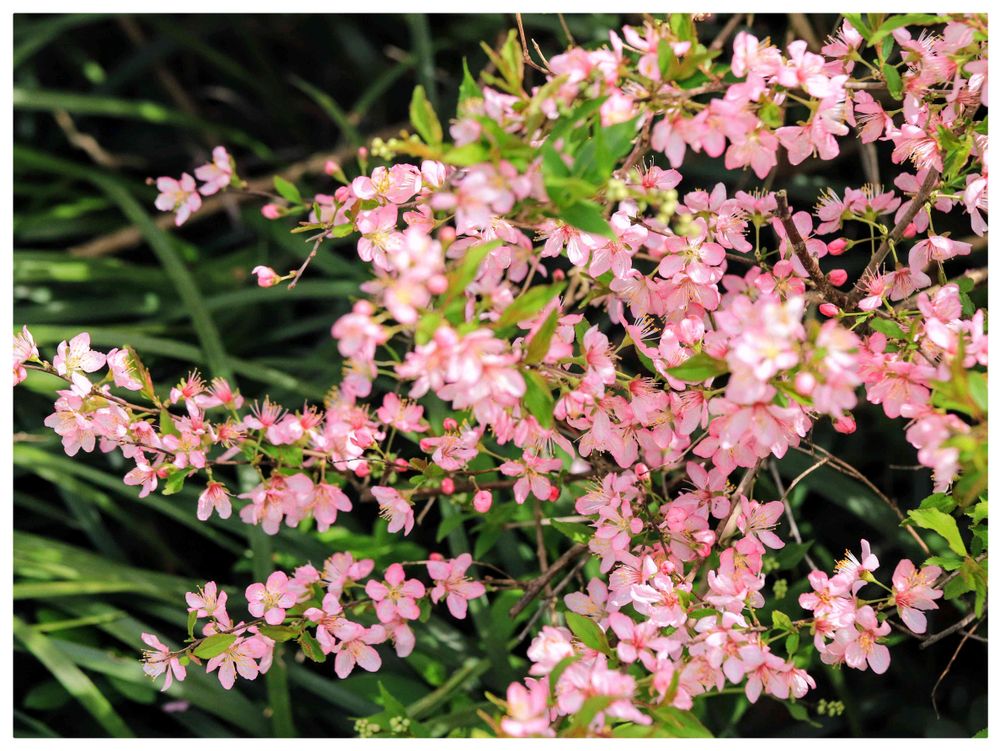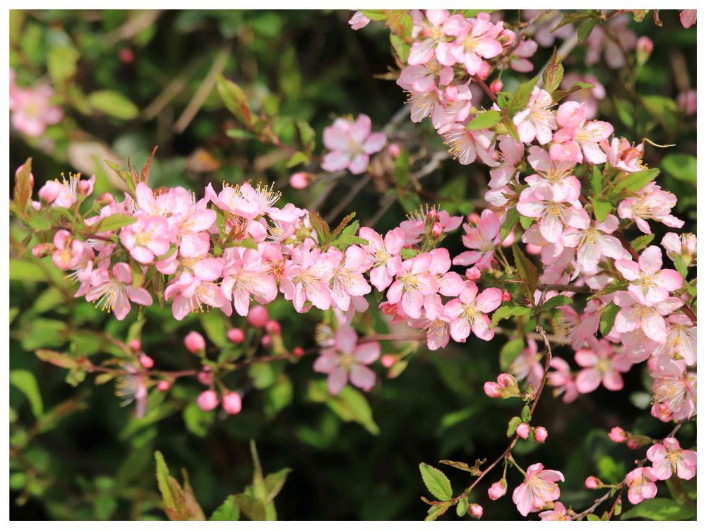 ニワウメの花ビラが見頃になると、びっしり光沢があってピカッと輝いて、とっても鮮やかで目を惹くんですよ〜🌸🩷