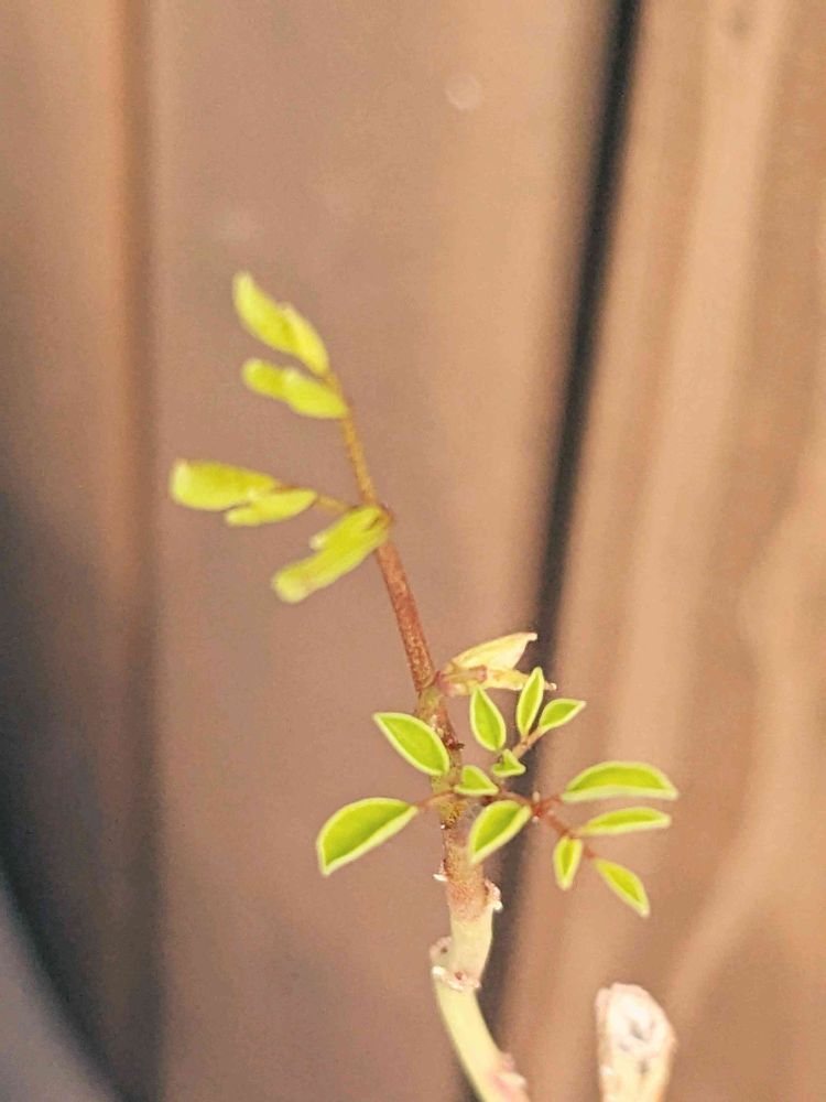 去年蒔いたモリンガが冬に落葉して棒になりましたが、やっと起き出しました😊