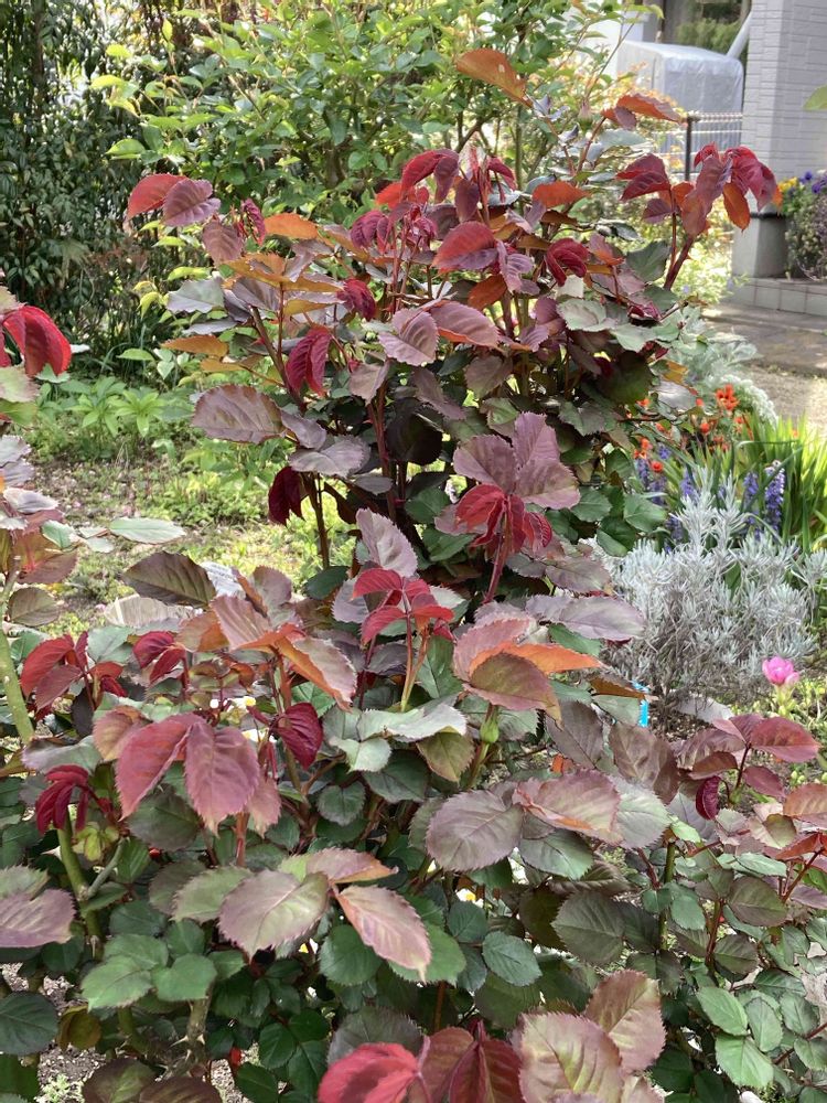 バラはお花も楽しみだけど、実はこの元気な銅葉や照り葉を見るとワクワクします😆