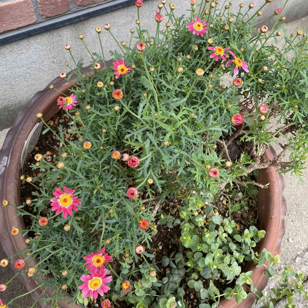 一緒に寄せ植えしたボンザマーガレットは冬越し前に枯れてしまいました