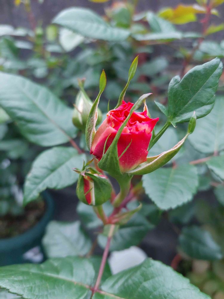 蕾は真っ赤ですが、サーモンピンク?オレンジ? 何色って言えない色々混ざったカラー。