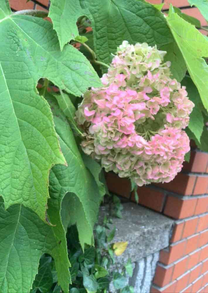 カシワバアジサイを一輪、切らずにおいて、ピンクになりました~(°Д°)
