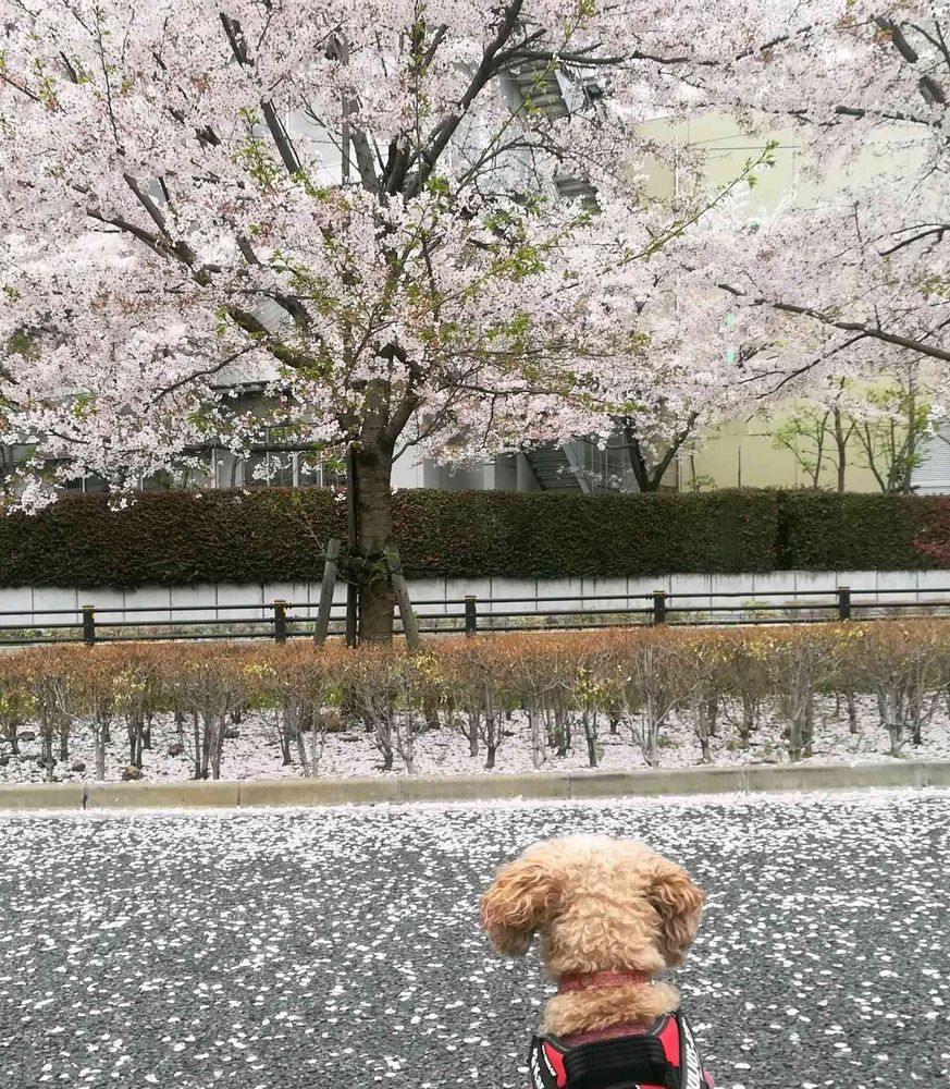 咲き競う桜も美しいけど、風に舞う桜もまた美しいワン🐾