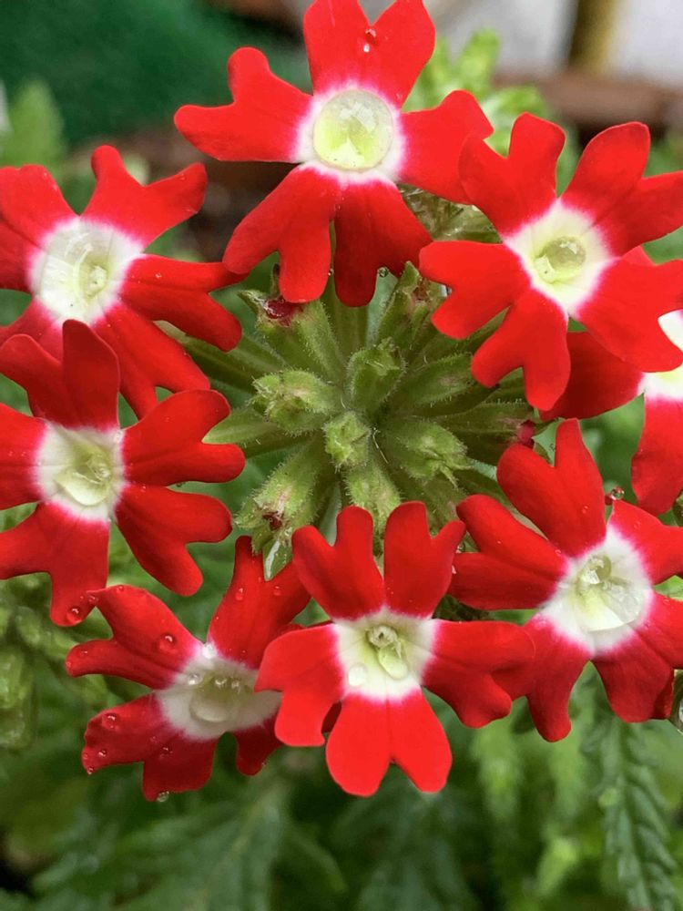 バーベナさん❤️丸くなってみんな仲良く笑って咲いています❤️赤と白、めでたい❤️めでたい❤️