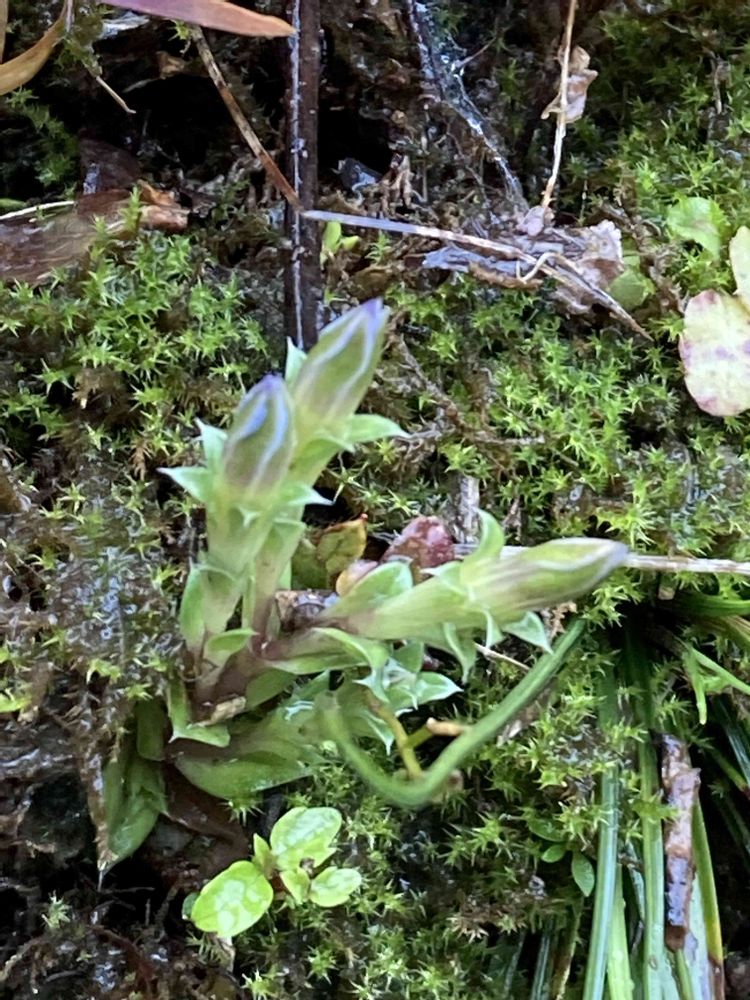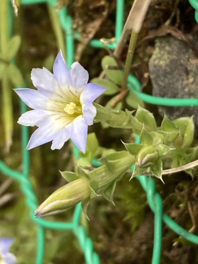 自然大好き派😘です。春のリンドウシリーズ第二弾です。この花は小さいです。写真は拡大していますので大きさが不明ですが、花の直径は7.8mmです。でもしっかり花はリンドウです。名前の通り水💦が染み出しコケが生えている斜面で開花しています。