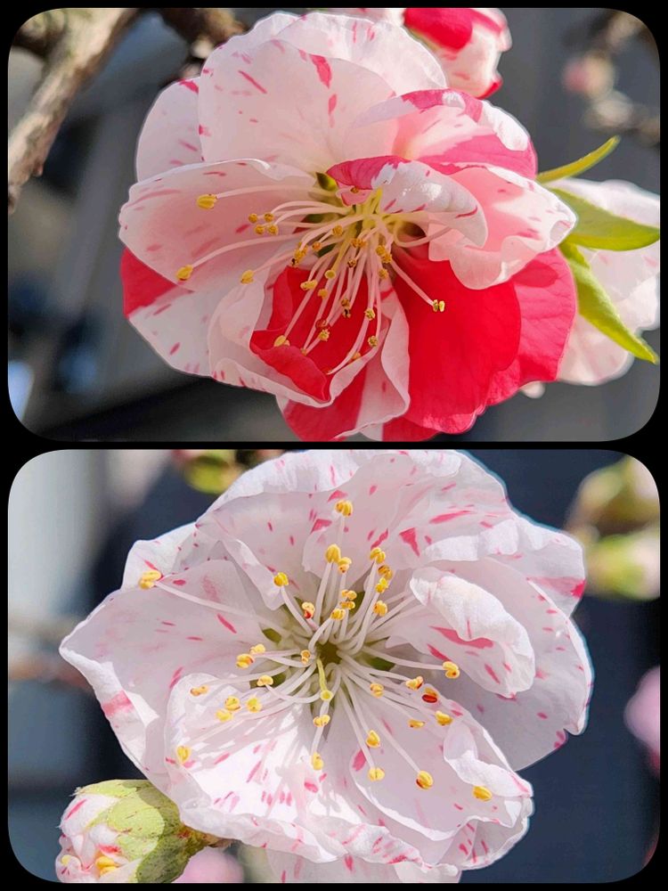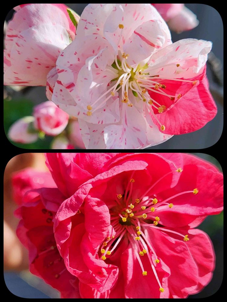 色んな模様(絞り)、色あいで咲く花桃