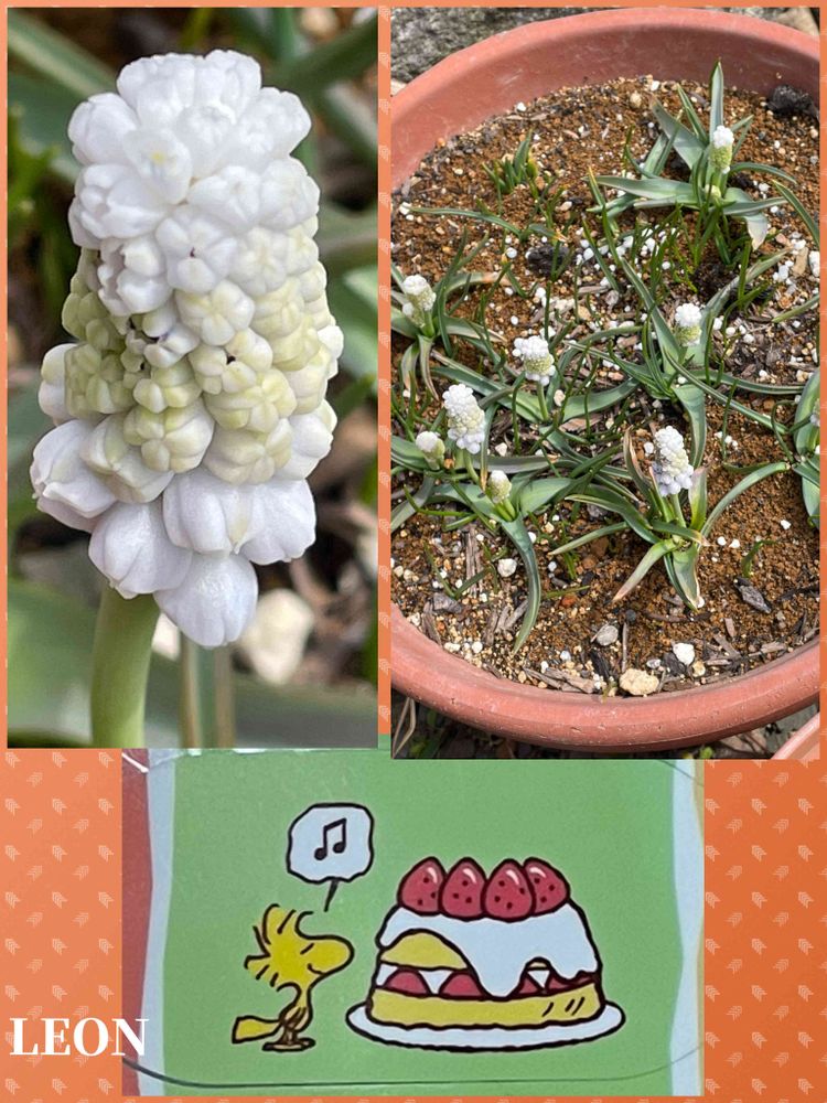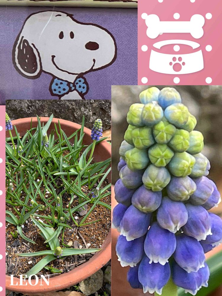 可愛いスヌーピーと、仲間達を大好きなムスカリとコラボして出来て嬉しいです😃