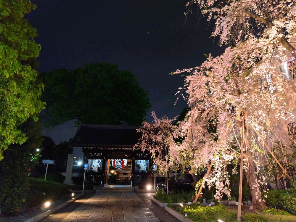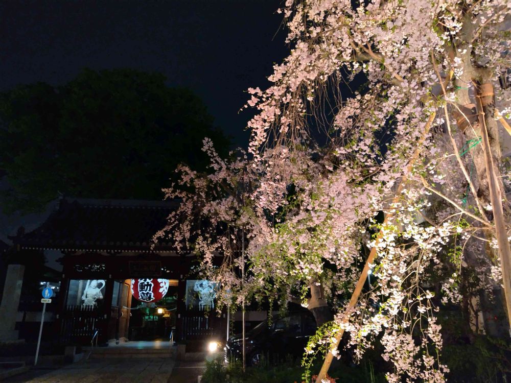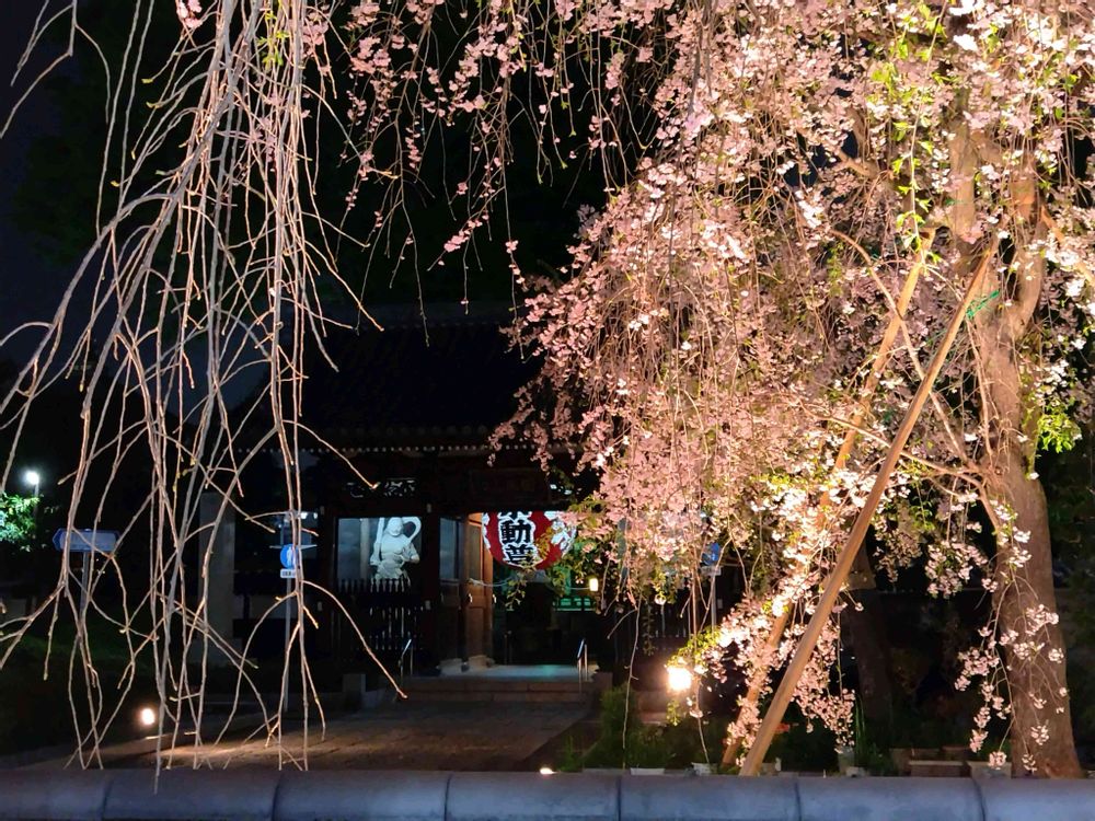 時々投稿する今年話題❓の田無神社のすぐそばに総持寺というお寺があるのですが、この山門に3本の枝垂れ桜が植わっていて毎年ソメイヨシノより少し遅れて開花し、しかもこの時期だけお寺さんの粋なはからいでライトアップもしてくれるのです✨