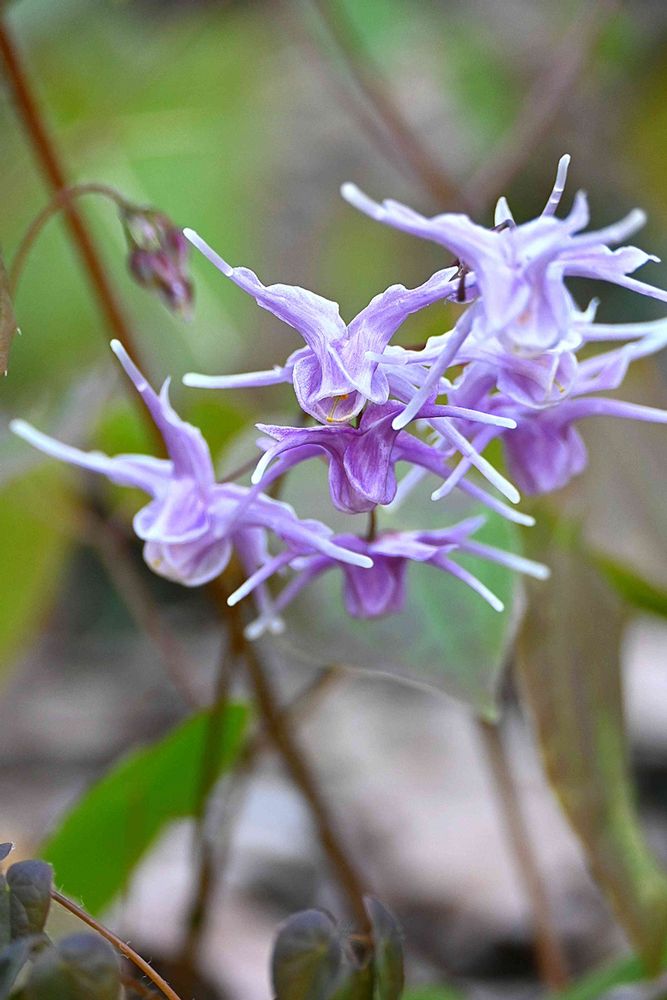 森の中で出逢ったイカリソウ、薄紫色・ピンク色・白・赤紫とありました💜🩷🤍🌿😊