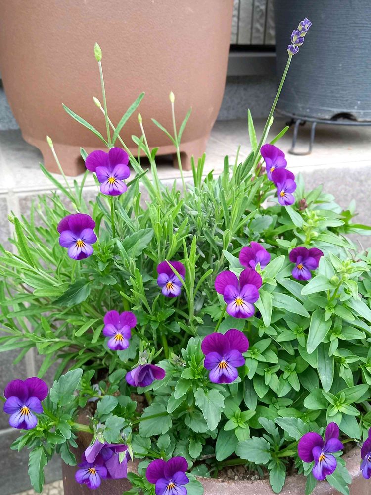 2️⃣こぼれ種中心の寄せ植えのビオラ