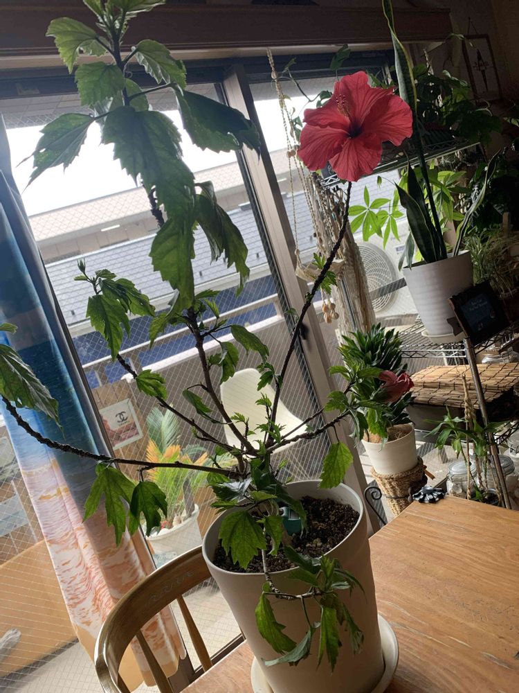 おはよう☺️よこっちちゃん久しぶりだね☺️GSが不具合になってから 直らないまま 凄くやりにくくなって たまにしか来なくなっちゃったけど 我が家のハイビスカス🌺は今の所 1個の鉢のハイビスカスだけ咲いてるけど他のふたつは冬眠中😅💦だから咲いてくれた時はやっぱり嬉しくて沢山撮っちゃうね🤭