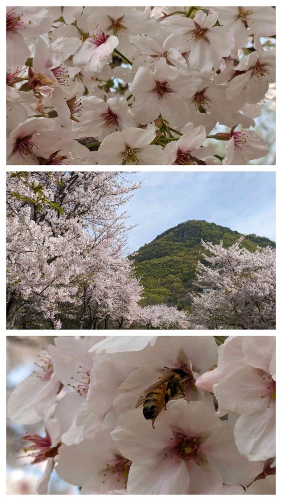 TVで良く紹介される『天空の鳥居』の下の神社の桜🌸🌸🌸 満開の桜🌸🌸🐝も忙しそう