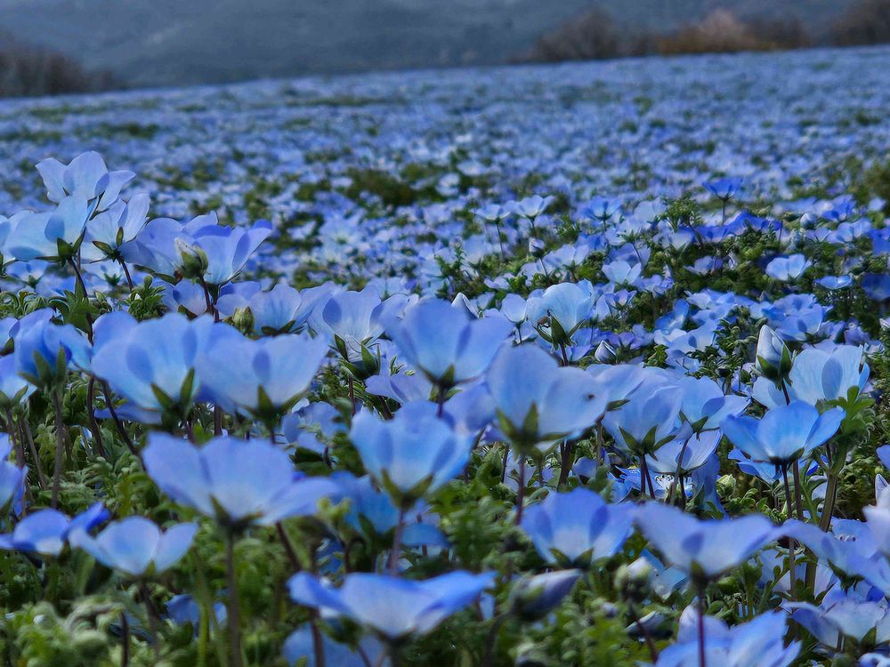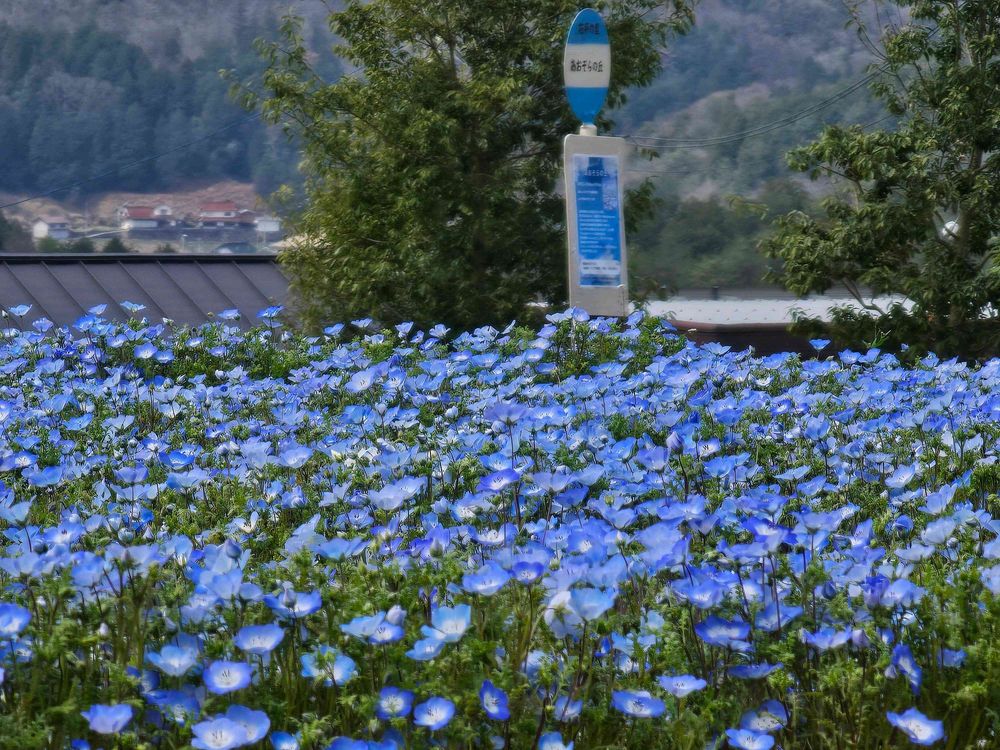 バス停のすぐ後ろ姿がこんなに見事なネモフィラ畑なんですね🤗