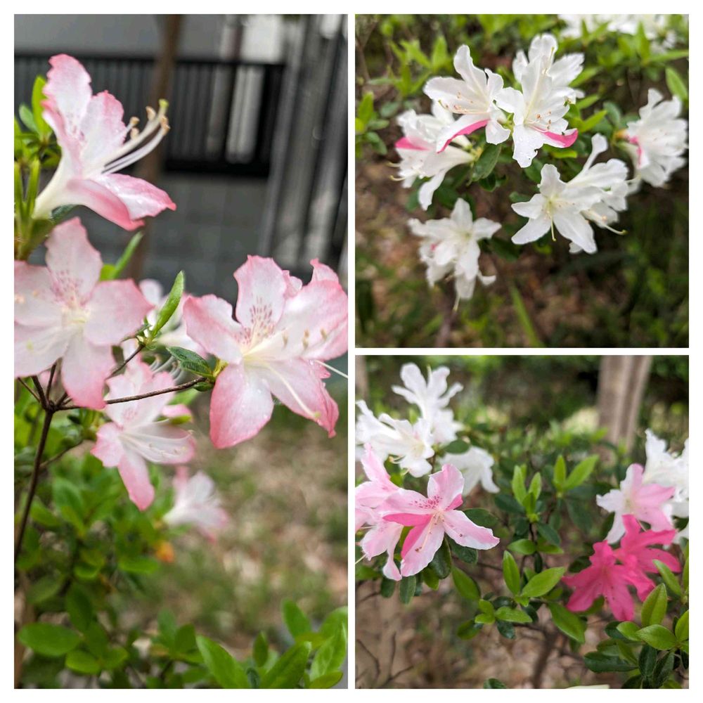 右下は、1本の木に違う色の花がいろいろと咲いています🩷🤍❤️