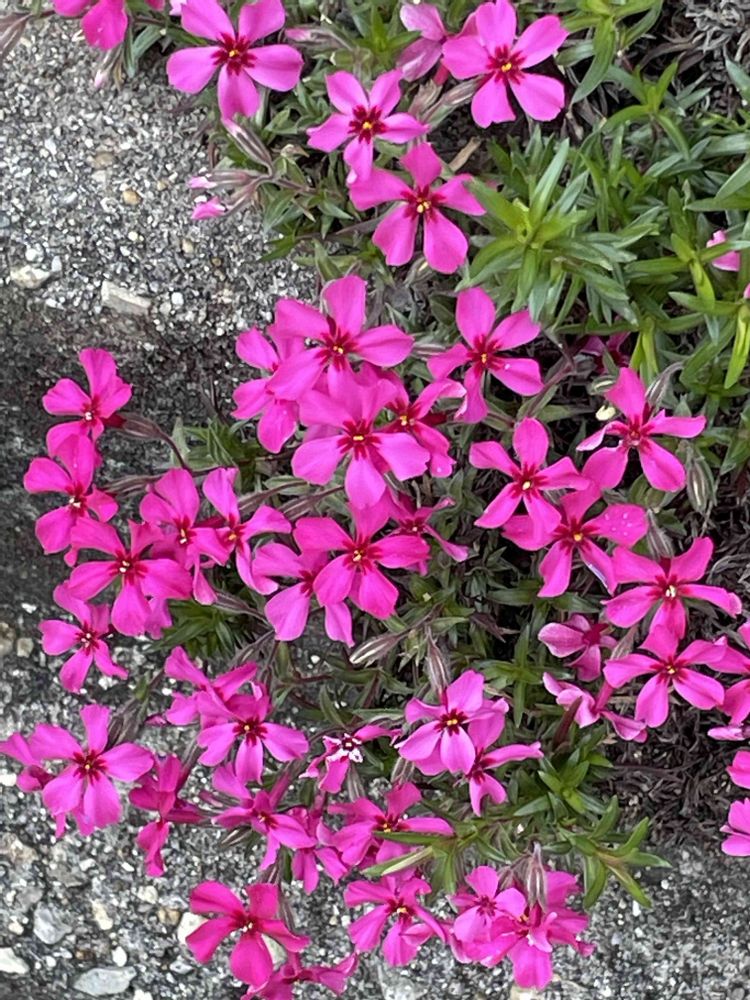 東側外壁下で芝桜垂れ下がってさいてます🩷