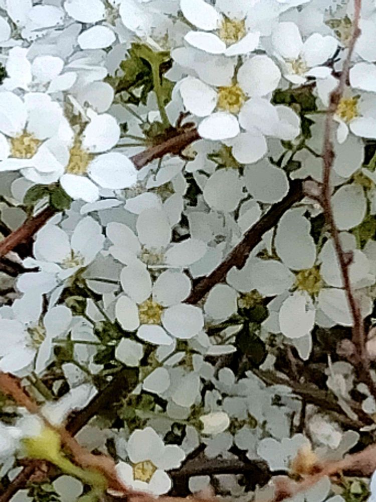 庭のユキヤナギ、遠目で見ても素敵ですがアップにしたらなお素敵でした。