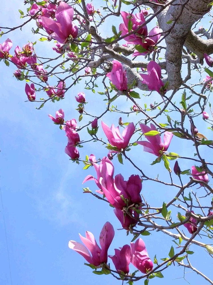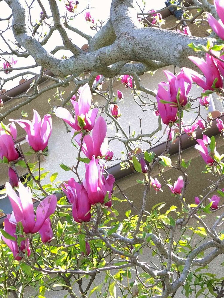 🏊に行こうとバス停に急いでいると、フト、塀の上のモクレンが目に入り、📱であぁでもない、こぅでもないとカシャカシャしているうちに🚌が来て、慌てて飛び乗りました。