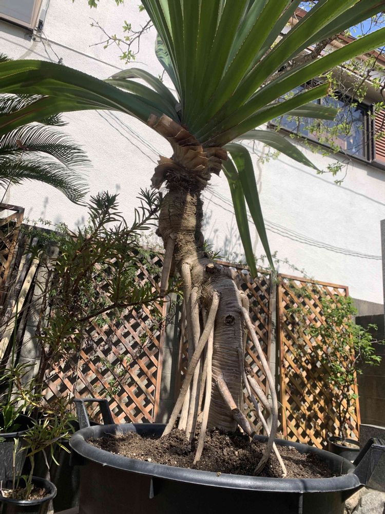 タコノキ、外に出す。かなりの重労働で、外に出すだけで一仕事。。