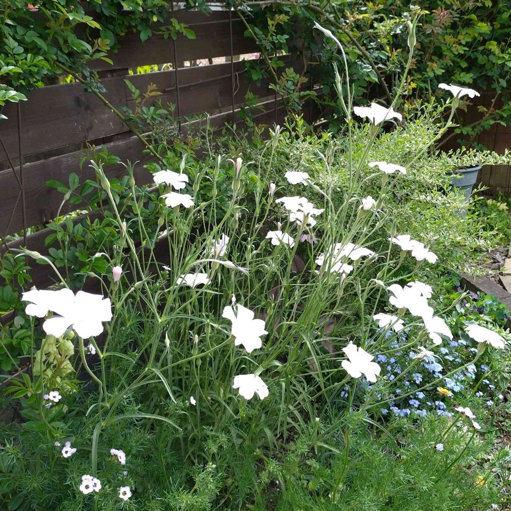 アグロステンマの白と向こうの忘れな草のブルーがイイ感じ〜🤍🤍🤍💙✨
