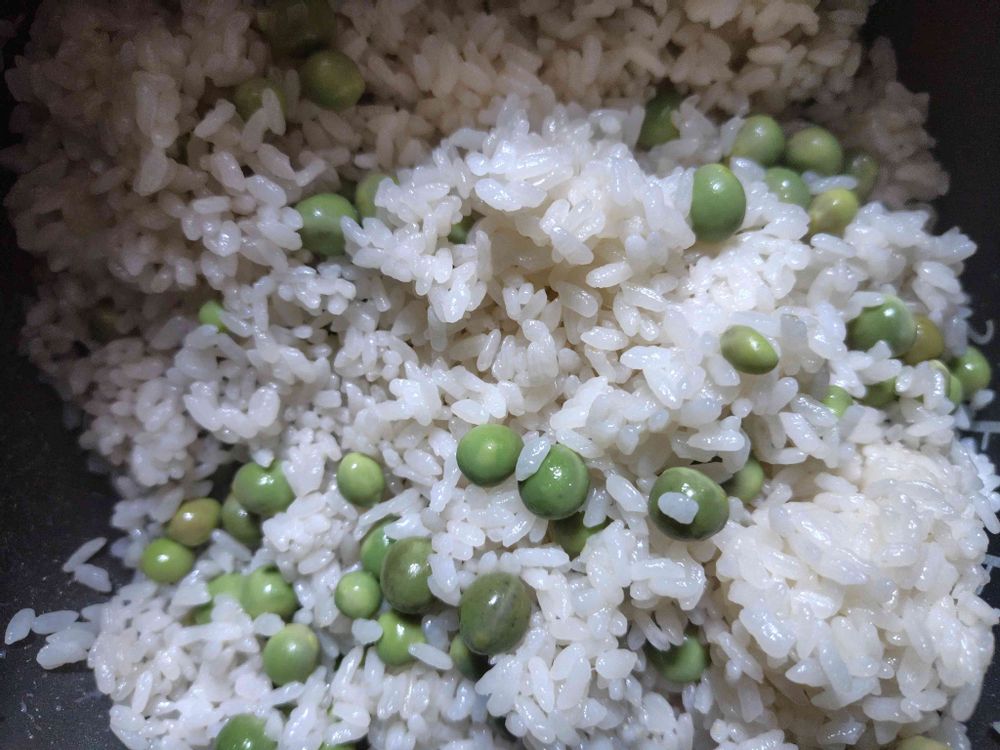 長く…3時間位?すると ピンク色ご飯になりますよ(お豆は緑色のまま) 😉