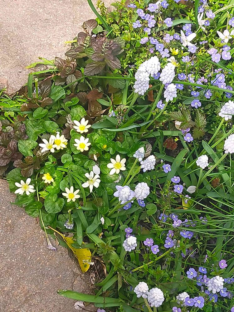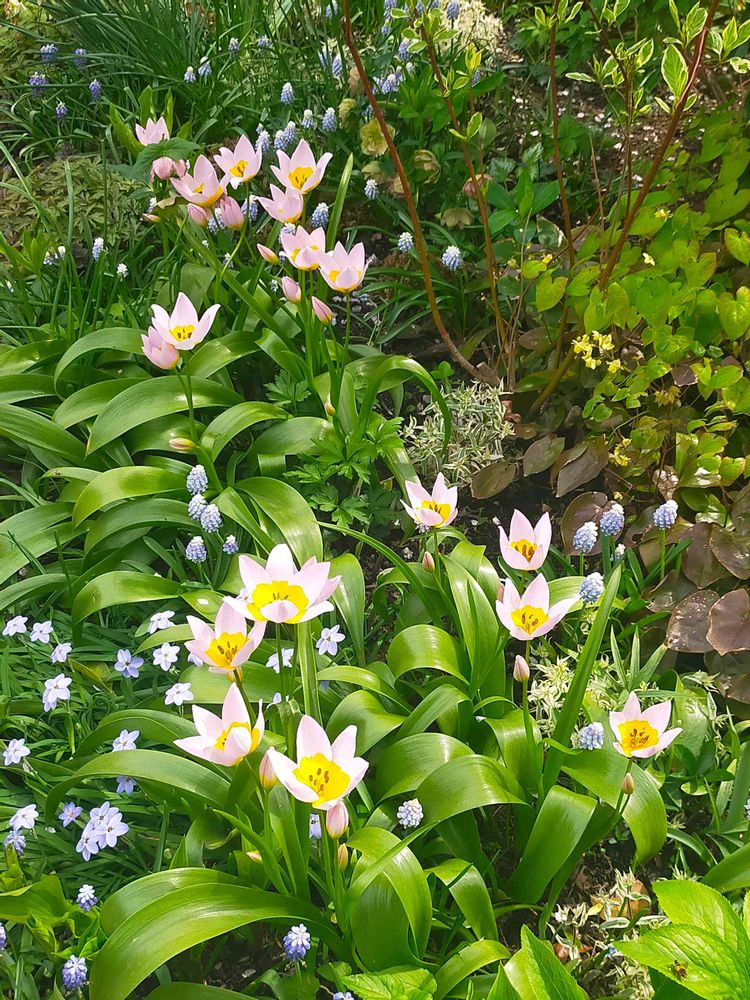 ムスカリ、スイセン、アジュガ、ヒメリュウキンカの植栽が素敵でした✨