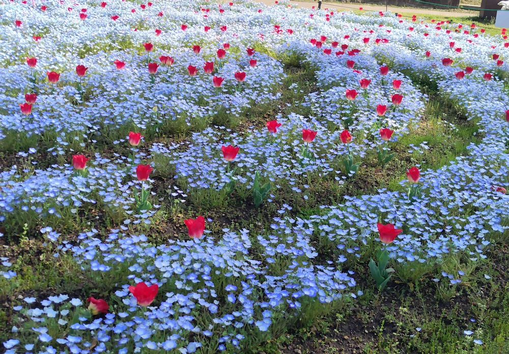 ネモフィラばかりの花壇もあったのですが、赤や黄色のチューリップとのコラボも可愛くて良いですね❇️💙🌷💙❇️