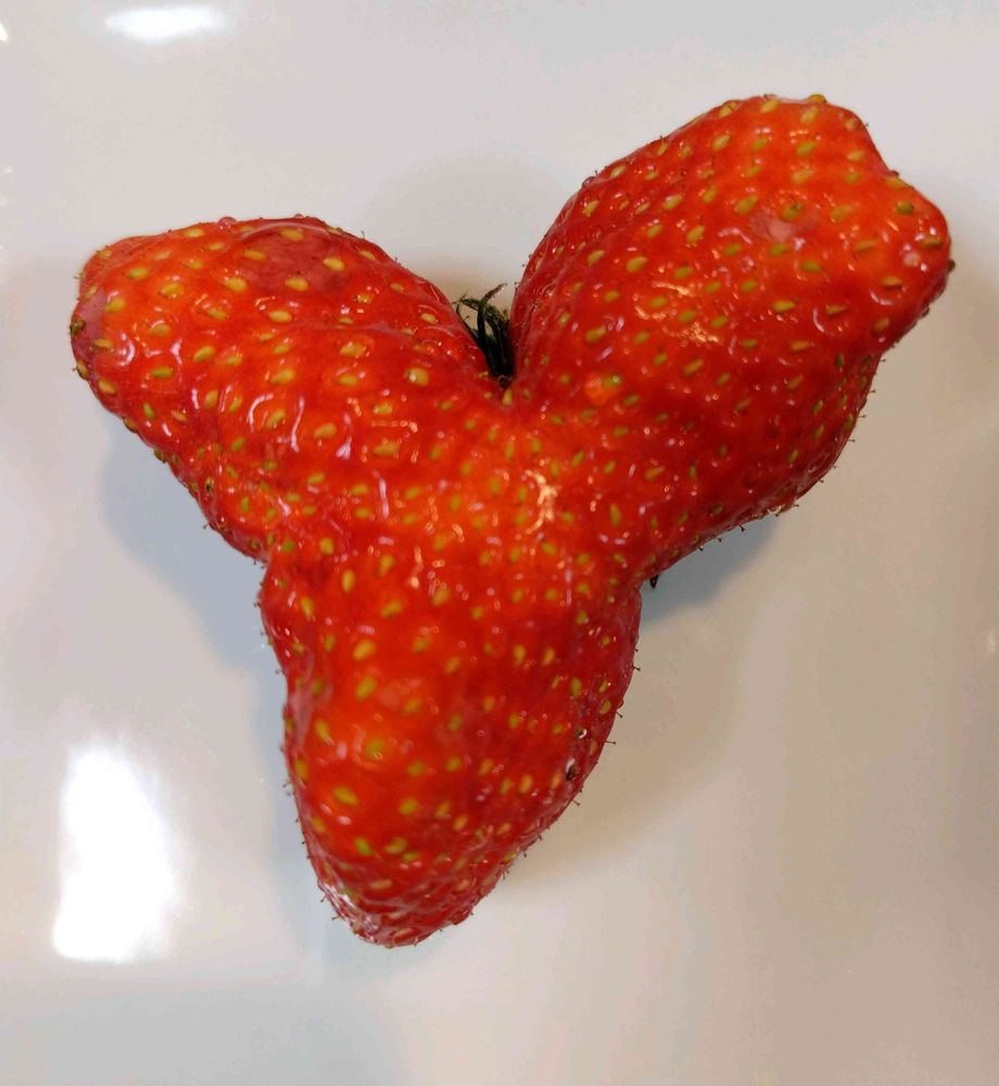 今日買ってきたイチゴパックの底に、こんな形のイチゴが入っていました~🤭
