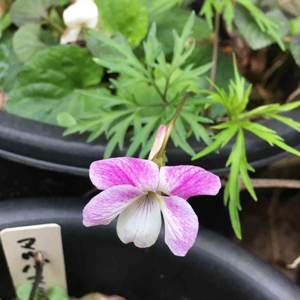 一つの鉢で3種類のスミレが咲いてしまった😅