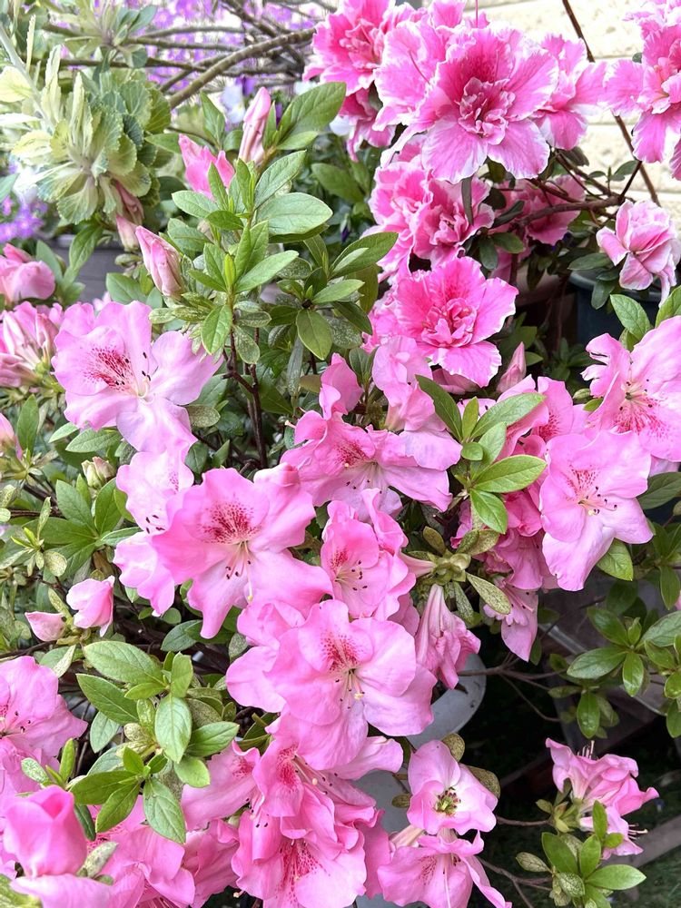 ⑤アザレア2種…どちらも見切り品から、一重の方もだいぶ咲いて来ました。八重の方は真冬以外はずうっと咲いてくれてます🩷🎶枝を私のお尻で折ってしまって残念ですが…🤣