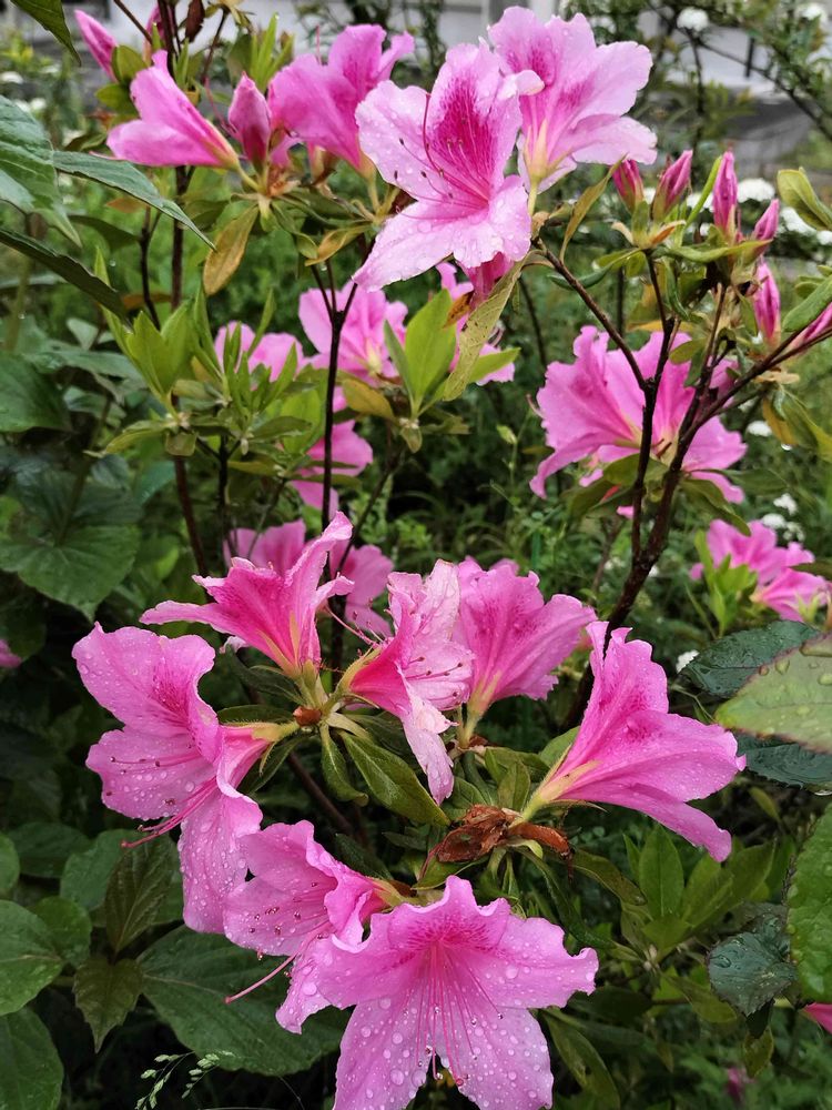 今日はまた雨。本日の花はツツジということで。うちの平戸&久留米ツツジは今ちょうど花盛りです。雨ですが、涼しい日が続いているので花痛みも少なく、長く楽しませてもらって感謝です。