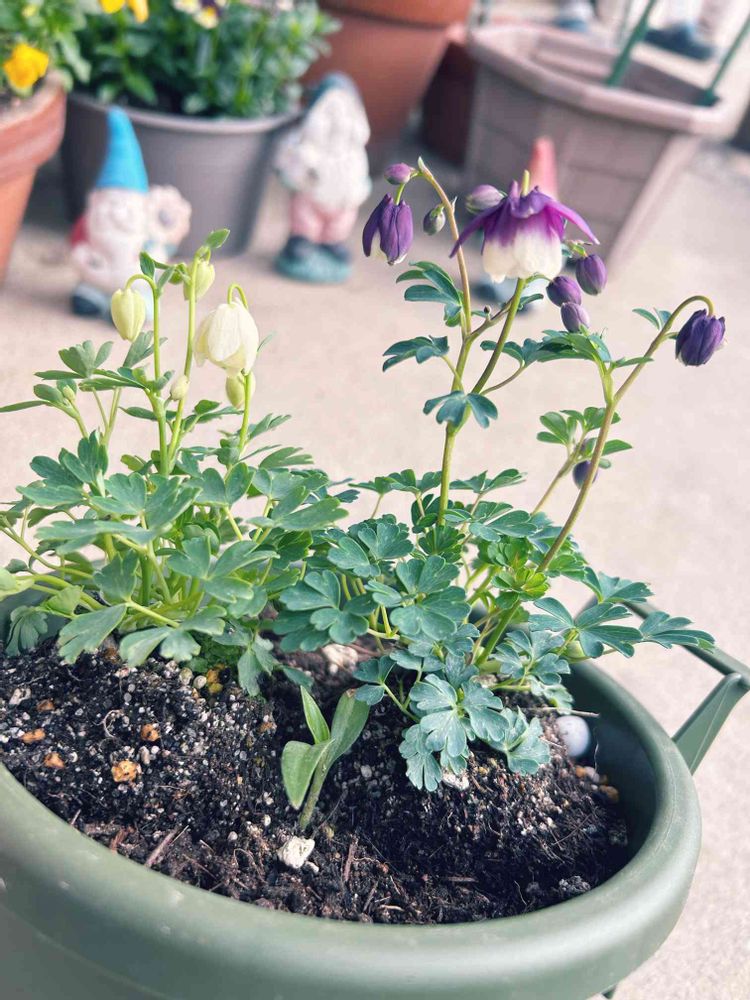 葉っぱもお花も可愛らしい姿の姫オダマキちゃん☺️