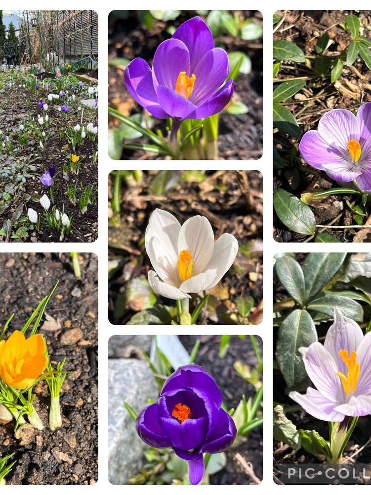 春の幕開けです 雪がやっと解けて庭中に増えたクロッカスが咲くいつもの春が来ました 2枚目はそれぞれのクロッカス達
